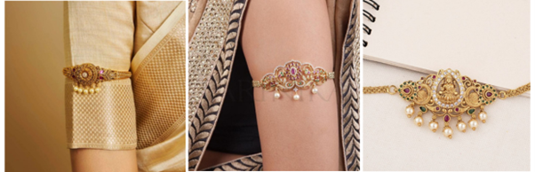 Bajuband is a bracelet that goes on the upper arm and is a traditional part of wedding jewellery. Bridal bajuband is a common feature on royal, ethnic wedding attire, particularly in South Indian and Rajasthani weddings.