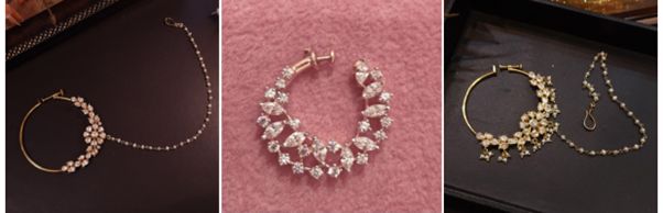 The bridal nose ring is well designed thus improving the facial features of the bride and also brings a classic beauty in her face.